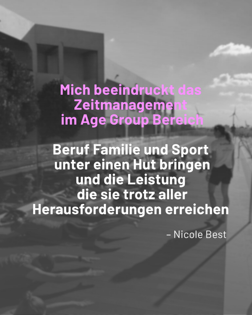 Und auf der anderen Seite beeindruckt, was im Age Group Bereich geleistet wird: Training, Beruf und Familie zu verbinden und trotzdem dranzubleiben.